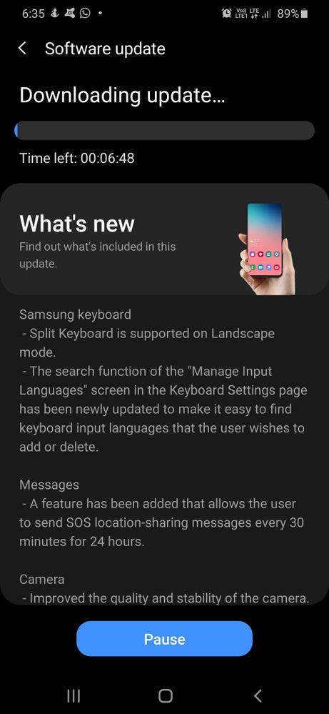 The One UI 2.5 update brings support for the split keyboard layout in landscape mode, an improved way to add or delete input language, SOS location sharing feature, and camera improvements. The new software also makes third-party app launchers compatible with Android 10's gesture-based UI navigation.